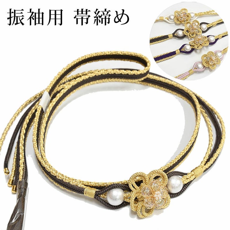 華やかなビーズの飾りがついた、お振袖用の帯締めです。コーディネートの引き締め役、アクセントになる帯締め。晴れの日の装いを美しく彩ります。