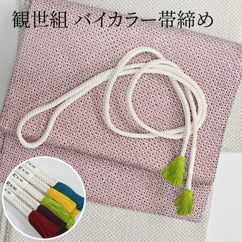 真っ白な帯締めに、鮮やかな色味の房の、カジュアルな帯締めです。シンプルなコーデの差し色として使える、ビビットカラーの房がポイントに。