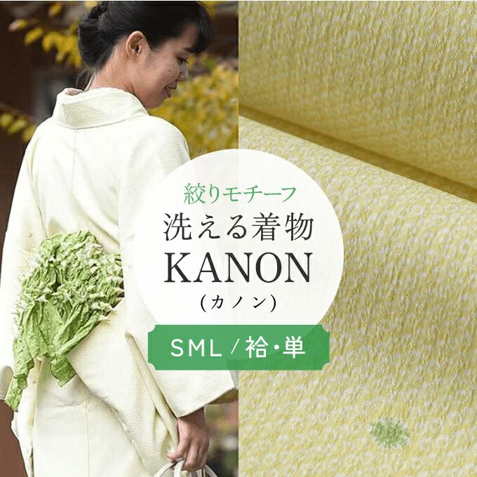 ※袷・単衣 /S M Lサイズあり※ 洗える着物 絞り鹿の子モチーフ 東レ素材 「KANON」(カノン) 黄×萌黄