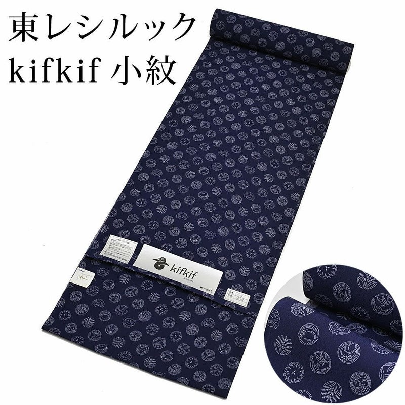 東レ シルック kifkif 丸紋 濃紺 小紋 洗えるシルック着物 〔反物〕