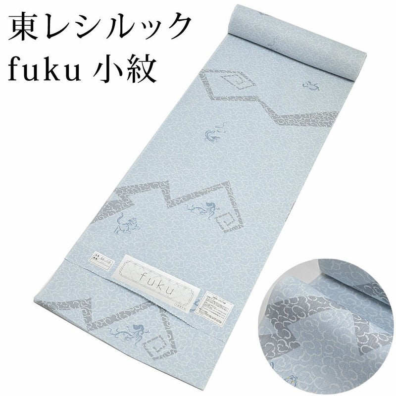 東レ シルック fuku 雷雲に四神 ブルー 小紋 洗えるシルック着物〔反物〕