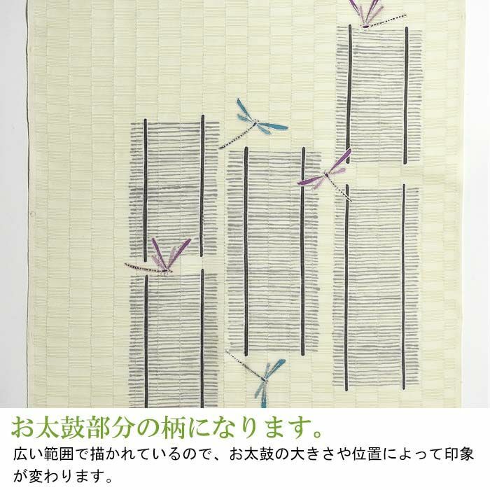 小紋や紬などおしゃれに合わせていただける染め九寸名古屋帯です。しっとりとした上質な風合いの五泉の絽の白生地に、涼しげな夏のモーチーフを染め上げ、おしゃれに仕上げました。カジュアルな印象の紬や浴衣などに合わせ、 おしゃれにキリリと着こなして、美術館や博物館に出かけたいですね。