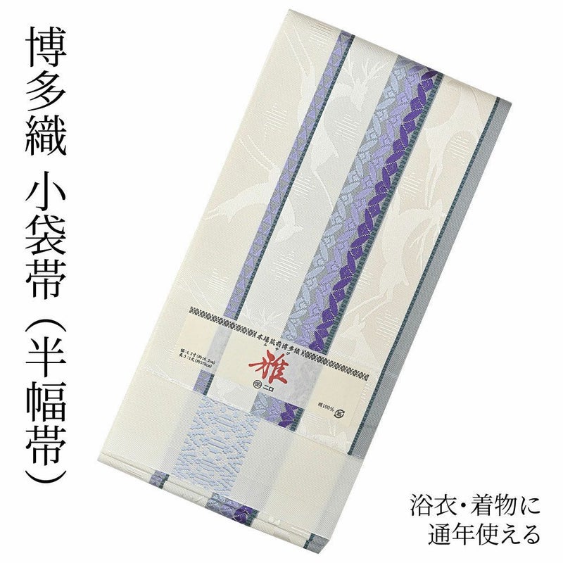 博多織 半幅帯(小袋帯) 長尺 森博多織 謹製 「雅」 正絹 鹿(白) リバーシブル