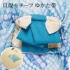 表面は生成り色に可愛らしい貝殻モチーフをちりばめました。裏はスッキリ落ち着いた濃い目のブルーのリバーシブル仕様です。反対側をちらりと見せてコーデのアクセントにも。気分やコーディネートに合わせてお使いいただけます。