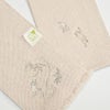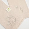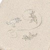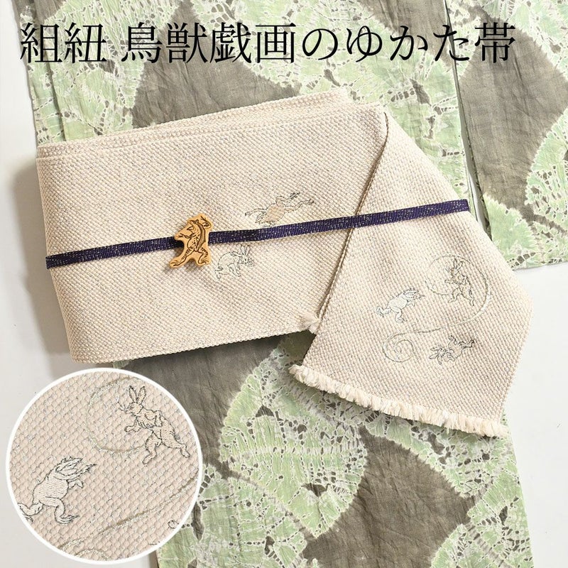 片方の端末と前帯部分に、鳥獣戯画のうさぎとカエルの刺繍をほどこしました。日本最古の漫画ともいわれる鳥獣戯画。その軽妙なタッチが、着物好きさんに根強い人気。刺繍部分を中央に持ってきても、少しずらしてもオシャレ。