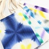 有松絞りの技法のひとつ「雪花絞り」をほどこした生地を使用。味わいある染めの色合いも魅力。コットン100%なので汚れてもサッと洗えるのもうれしいポイント! ※生地の取り方によって、色柄の位置が画像と異なる場合がございます。
