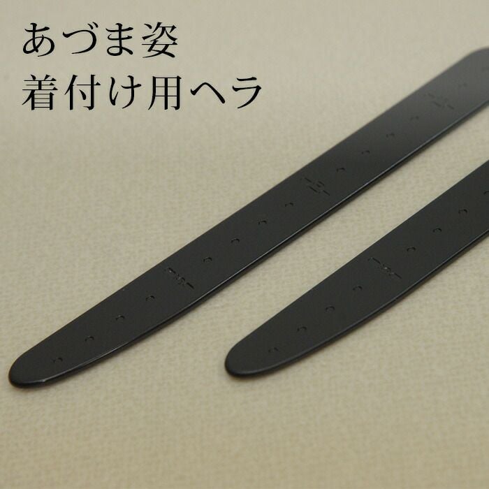 おはしょりや帯揚げの始末は、着付ヘラを使って整えるとより美しく仕上がり、プロの着付け師の方に愛用されています。大・小2本組ですので、他装用と自装用の使い分けができ、小さい方は、帯の間に挟んで携帯できる長さとなっています。メモリや根付けを通す穴もあり便利です。