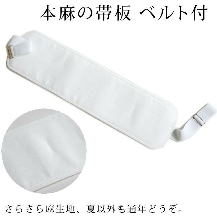 汗をかきやすい帯周りに。本麻生地を使用した、さわやかな使い心地の帯板です。
