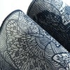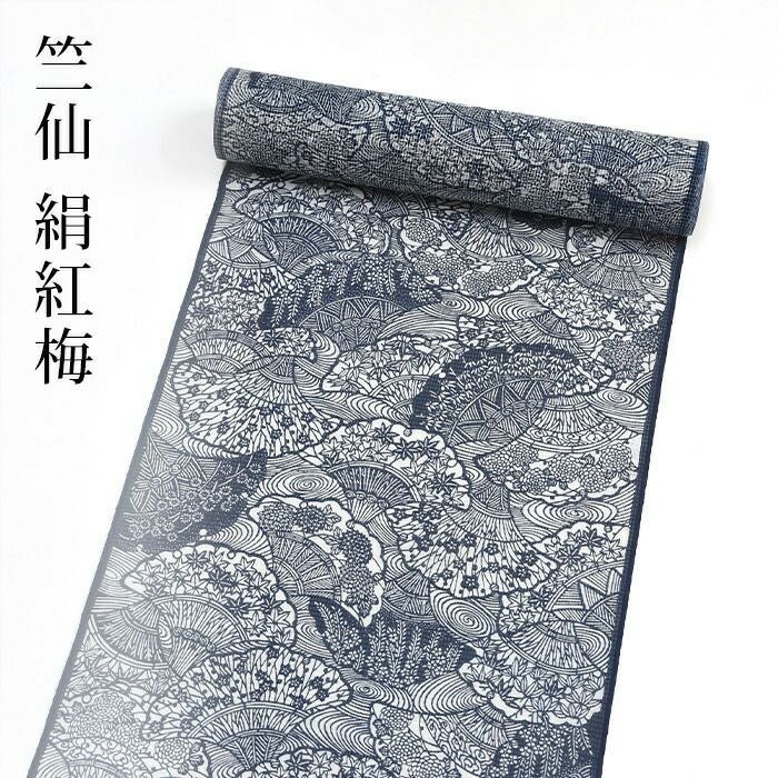 他のシリーズにない透け感のある高級感が特徴の絹紅梅シリーズ。藍の地色に、波に舞う扇子の柄がおしゃれ。扇子に描かれた植物が華やかな雰囲気。