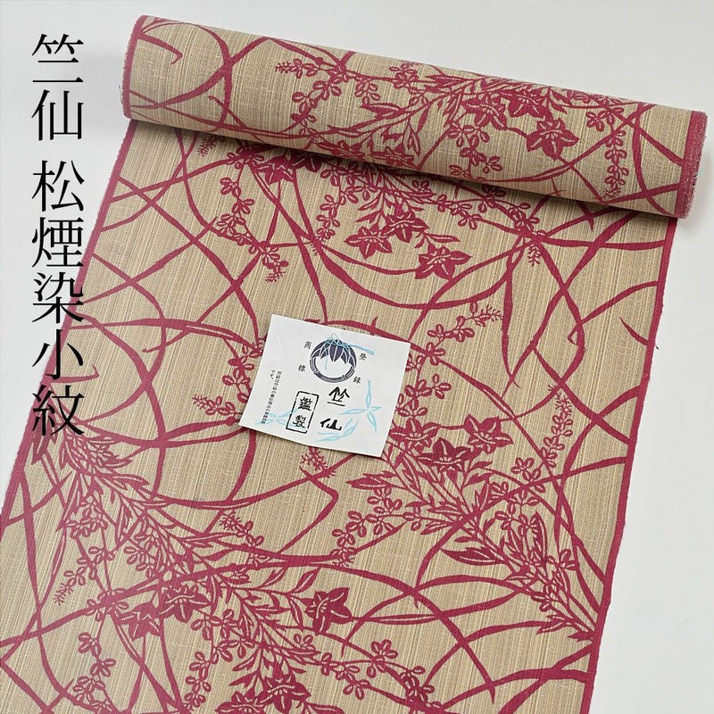手織り紬のような独特の生地。個性的な夏のおしゃれ着物としても活躍します。赤で描かれた、萩や桔梗の秋草柄が女性らしい雰囲気に。