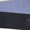 片方の端末と前帯部分に、星をイメージした金糸、銀糸の刺繍をほどこしました。キラキラと輝く刺繍は、落ち着いた色合いの帯地に映え、コーデのアクセントに。裏はブルーの無地です。リバーシブルでお使いいただけます。