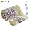 流れるようにたゆたう、日本人が愛すべき定番の桜の柄は年中まといたい。渋いベージュ地に流水部分はグレー、花部分は深い紫を。大人が粋にも着られる1枚に。シルケット加工済のやわらかい綿100%生地。