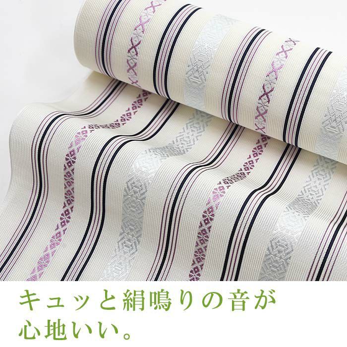 他の画像を見る 【お仕立て代込】※在庫限り※ 博多織 名古屋帯 博多帯 八寸帯 紗献上柄 透ける夏用 五献 白×薄紫 本場筑前 森博多織謹製 ¥ 43,450 税込 カートに入れる お気に入りに登録する